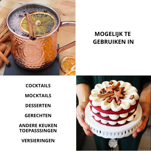 - Veelzijdig Gebruik: Perfect voor het toevoegen van diepte aan warme en koude cocktails, zoals een klassieke punch, verwarmende glühwein, of een verfijnde thee.